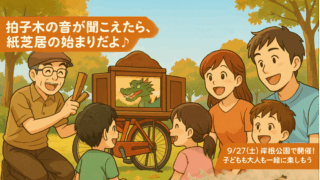 【岸根公園】来週土曜9/27開催!拍子木の音が聞こえたら、紙芝居の始まりだよ♪カチ、カチ、カチ…! 懐かしい拍子木の音が聞こえたら、それは楽しいお話が始まる合図です。来週9月27日(土)の午前中、岸根公園の中央広場に、地域で人気の「紙芝居お...